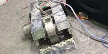 RoboSumo1.5ft by 1.5ft robot. 13kg weight. 2 super high torque lift door slider motor. Ramp for pushing opponent.
