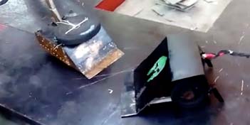 1ft by .75ft robot. 15kg weight. High speed drum as lethal weapon with a ramp.